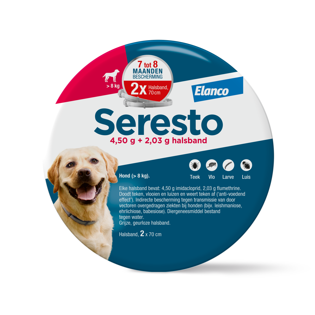 Bescherm je trouwe viervoeter tegen vlooien, teken en luizen met de Seresto Vlooienband voor Honden, een baanbrekende oplossing ontworpen om je hond tot 8 maanden lang te beschermen. Dit innovatieve product combineert gebruiksgemak met langdurige effectiviteit, waardoor je hond kan genieten van het buitenleven zonder de last van vervelende parasieten.