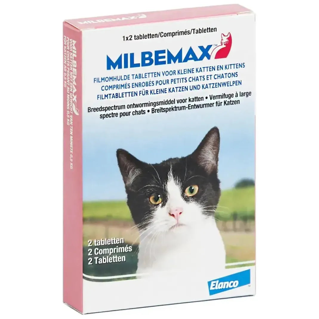Milbemax is een breed spectrum ontwormingsmiddel voor katten. Breed spectrum houdt in dat het middel werkzaam is tegen alle soorten wormen. Milbemax is het meest gebruikte ontwormingsmiddel en wordt door dierenartsen door het hele land aangeraden. Het middel komt in de vorm van kleine tabletjes. Deze kan je in zijn geheel of fijngemalen aan jouw kat geven. Je kunt Milbemax zowel preventief als bij een actieve wormeninfestatie gebruiken.