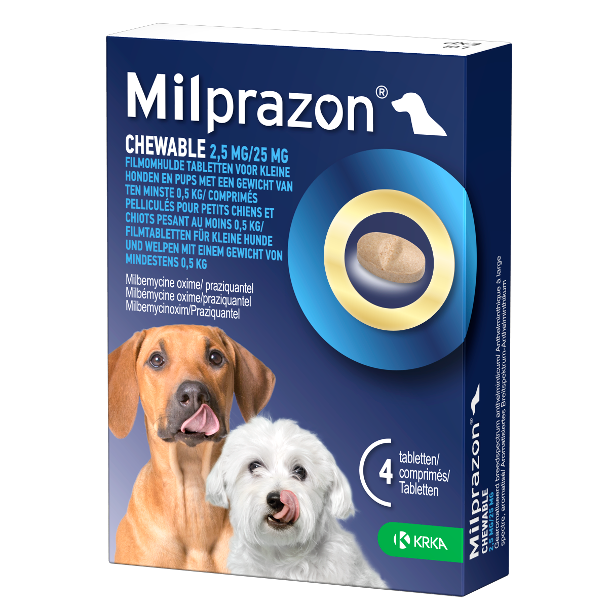 - Milprazon Chewable 2,5 mg / 25 mg (kleine hond): pups en kleine honden vanaf 0,5 kg